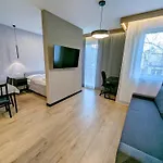 Het appartement beschikt over een kitchenette en over alle nodige artikelen, inclusief een waterkoker, een koelkast en een oven, die daar gevonden kunnen worden. Dit appartement is in de onmiddellijke nabijheid van de dichtstbijzijnde bushalte, Grabowo.